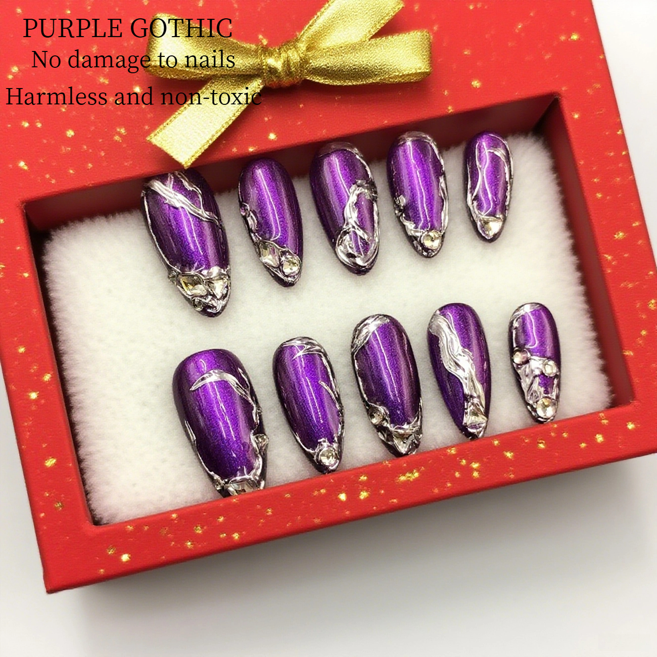 These purple metallic nails with silver accents are stylish and mysterious.